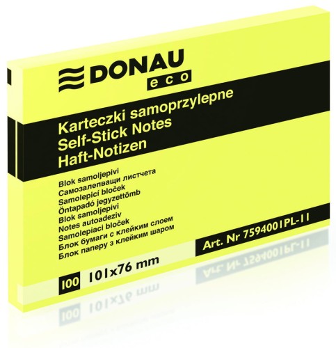 Bloczek samoprzylepny 76 x 101mm DONAU Eco 100 karteczek kol. żółty 7594001PL-11