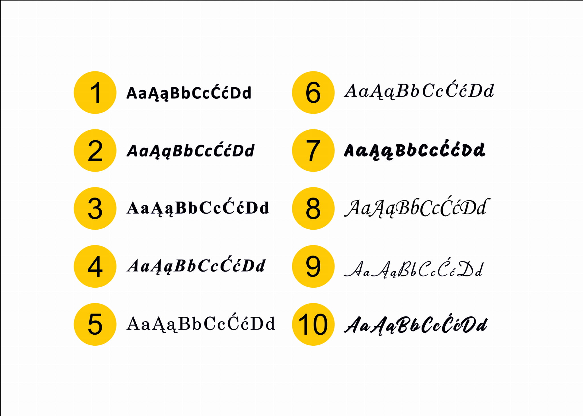 W uwagach do zamówienia podaj tylko numer wybranej czcionki oraz treść graweru.