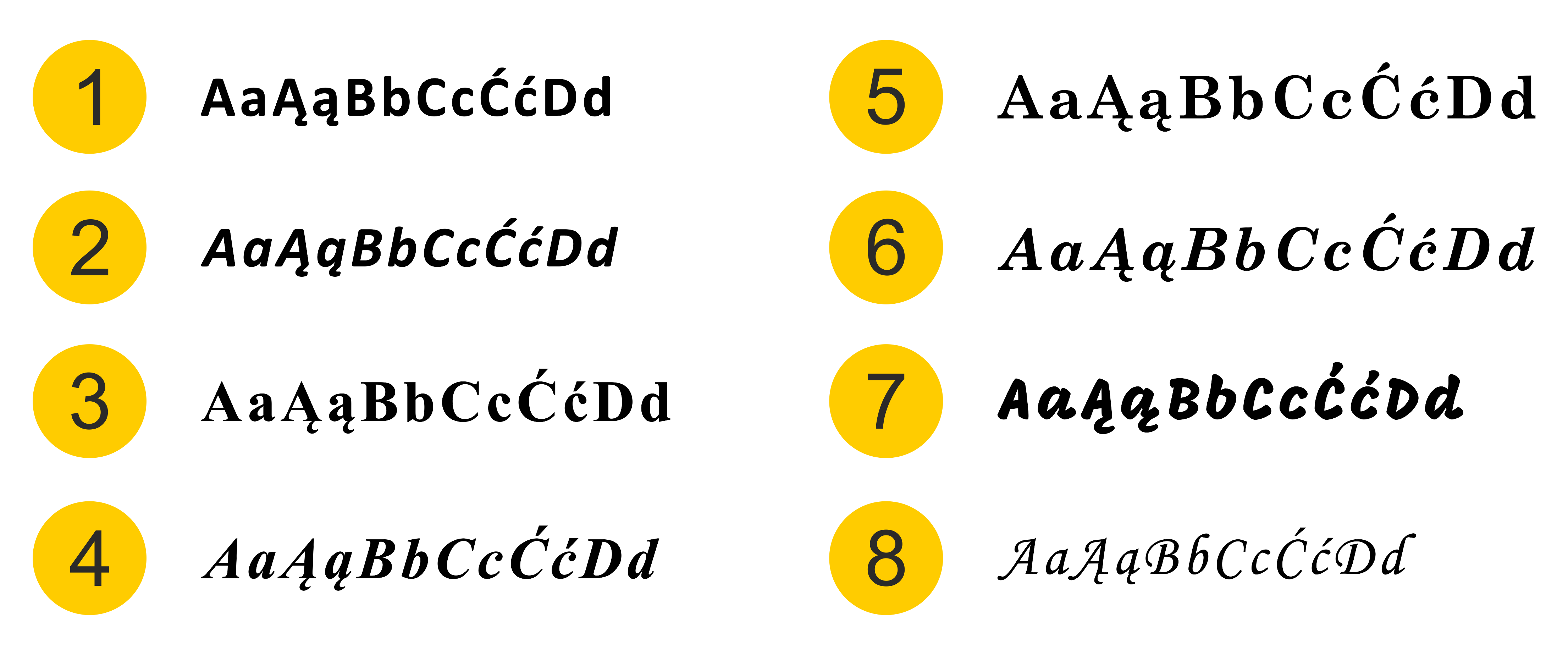 W uwagach do zamówienia podaj tylko numer wybranej czcionki oraz treść graweru.
