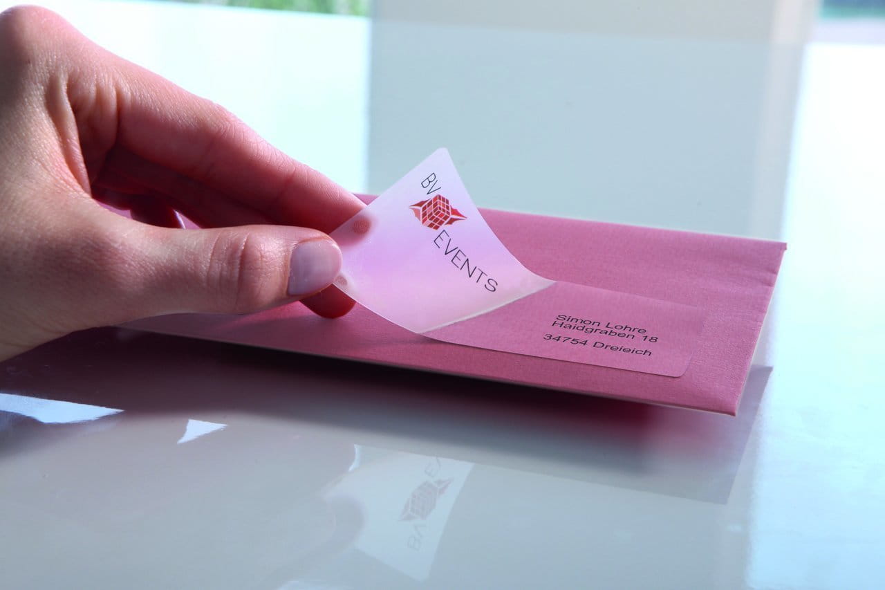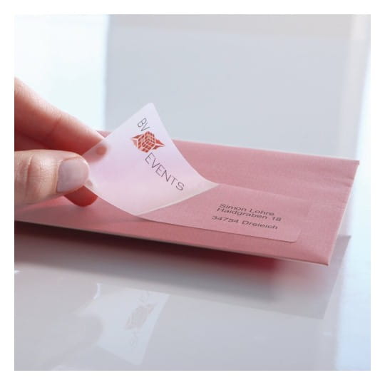 Praktycznie niewidoczne po aplikacji, idealne do jasnych kopert.