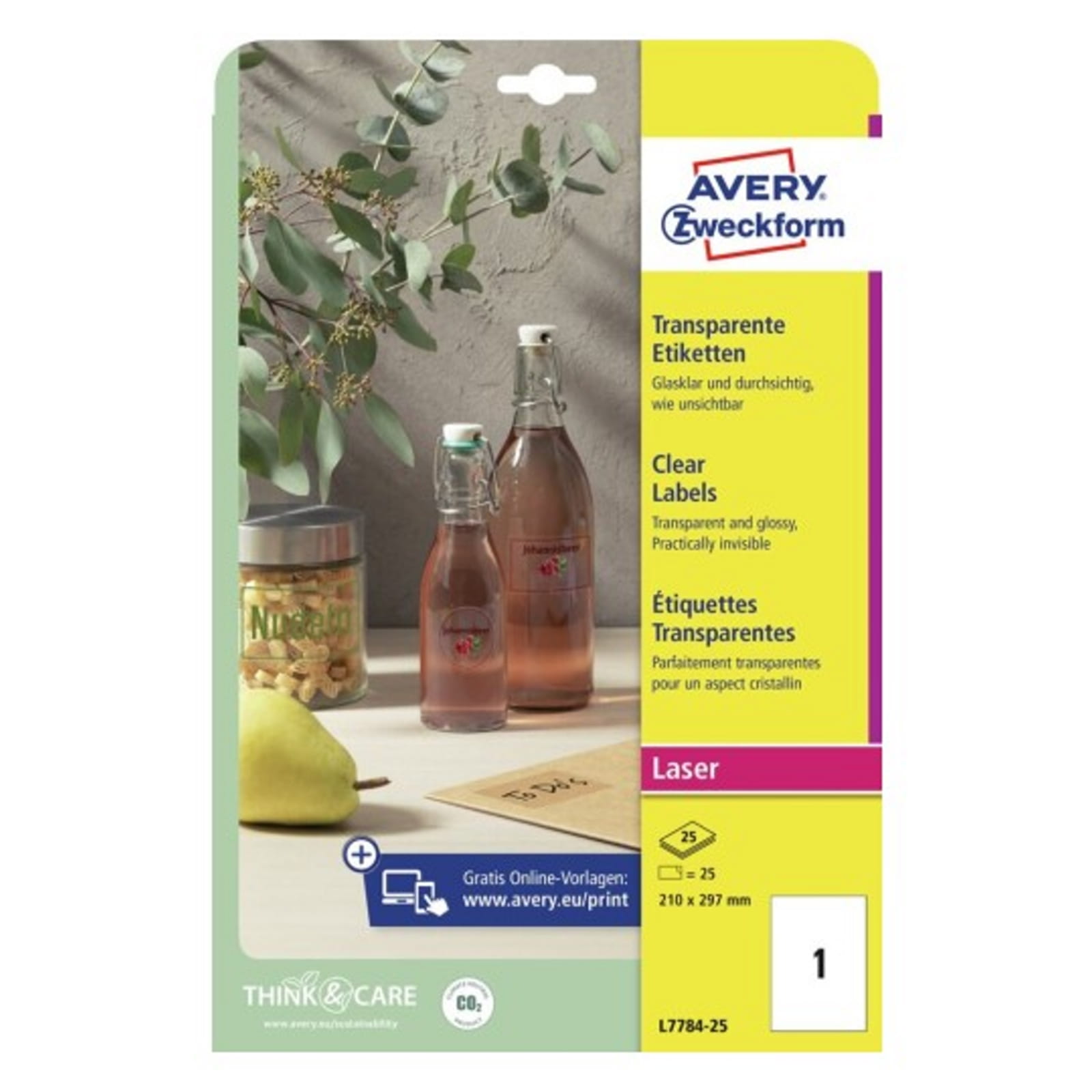 Przezroczyste etykiety foliowe Avery Zweckform o wymiarach 210 x 297 mm, przeznaczone do drukarek laserowych i kolorowych laserowych.Idealne do błyszczących powierzchni,
