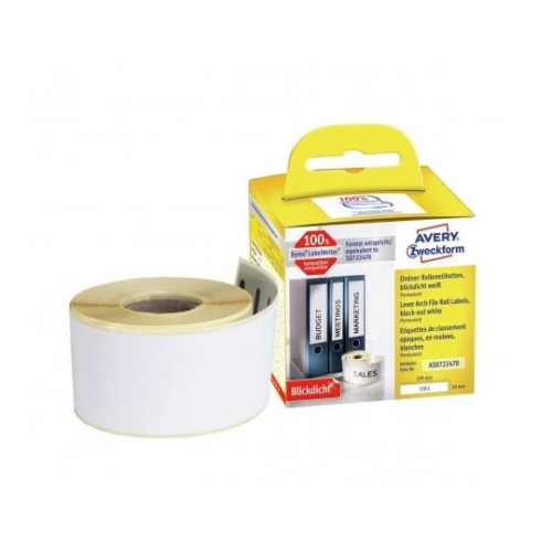 Etykiety do termodruku do segregatora 50mm w rolce typu Dymo papierowe AVERY ZWECKFORM 38 x 190mm kol. biały 110 szt. AS0722470
