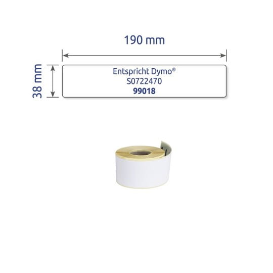 Adresowe etykiety Avery Zweckform o wymiarach 38 x 190 mm, przeznaczone do drukarek termicznych DYMO LabelWriter (serii 300, 400, 450, 4XL, Wireless).Wykonane z papieru