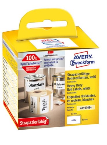 Etykiety do termodruku w rolce typu Dymo HEAVY DUTY poliestrowe AVERY ZWECKFORM 32 x 57mm kol. biały 400 szt. A1933084