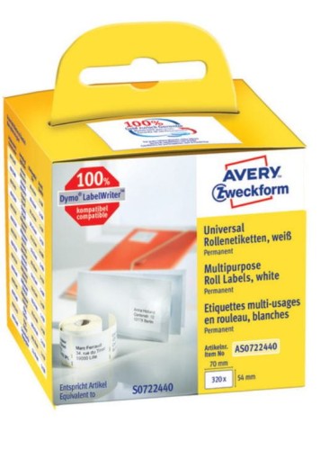 Etykiety do termodruku w rolce typu Dymo trwałe papierowe AVERY ZWECKFORM 54 x 70mm kol. biały 320 szt. AS0722440
