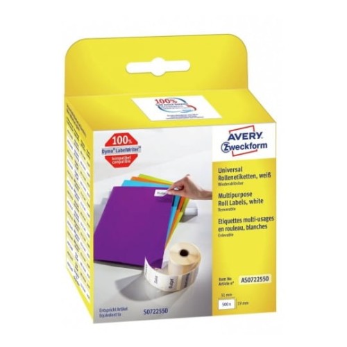 Etykiety do termodruku w rolce typu Dymo usuwalne papierowe AVERY ZWECKFORM 19 x 51mm kol. biały 500 szt. AS0722550