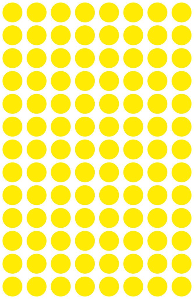 Samoprzylepne etykiety w kształcie kółek Avery Zweckform o średnicy 8 mm, w kolorze żółtym.