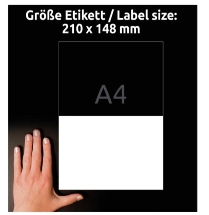 Wodoodporne etykiety poliestrowe Avery Zweckform o wymiarach 210 x 148 mm, w kolorze białym.Idealne do trudnych warunków, odporne na wodę, olej, zabrudzenia i
