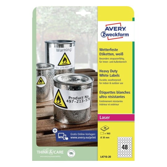 Etykiety HEAVY DUTY wodoodporne AVERY ZWECKFORM ?30mm kol. biały 960 szt.