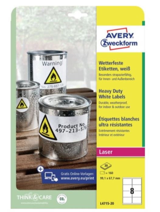Etykiety ochronne i zabezpieczające HEAVY DUTY wodoodporne poliestrowe AVERY ZWECKFORM 99,1 x 67,7mm kol. biały 160 szt. L4715-20