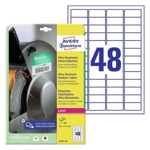 Etykiety ochronne i zabezpieczające ULTRA RESISTANT polietylenowe AVERY ZWECKFORM 45,7 x 21,2mm kol. biały 480 szt. L7911-10
