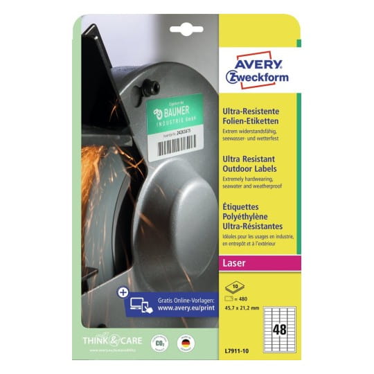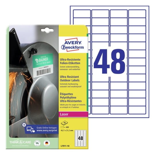Polietylenowe etykiety ochronne Avery Zweckform o wymiarach 45,7 x 21,2 mm, w kolorze białym.Idealne do trudnych warunków, odporne na wodę, olej, zabrudzenia i