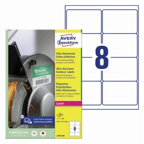 Polietylenowe etykiety ochronne Avery Zweckform o wymiarach 99,1 x 67,7 mm, w kolorze białym.Idealne do trudnych warunków, odporne na wodę, olej, zabrudzenia i