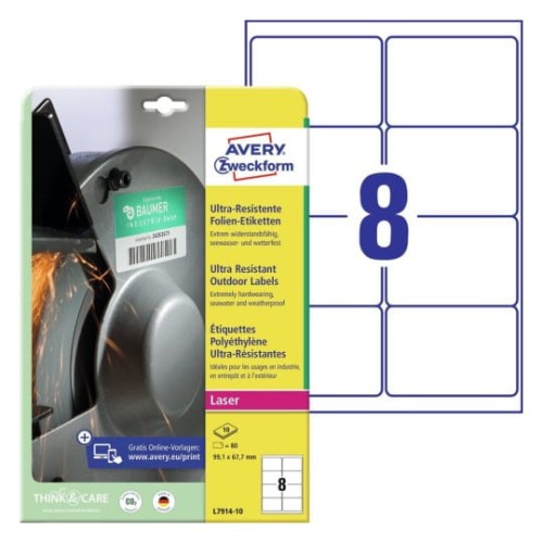 Polietylenowe etykiety ochronne Avery Zweckform o wymiarach 99,1 x 67,7 mm, w kolorze białym.Idealne do trudnych warunków, odporne na wodę, olej, zabrudzenia i