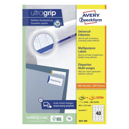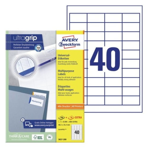 Etykiety uniwersalne ULTRAGRIP papierowe AVERY ZWECKFORM 48,5 x 25,4mm kol. biały 4000 szt. 3657