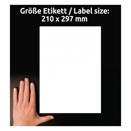 Papierowe, usuwalne etykiety Avery Zweckform o wymiarach 210 x 297 mm, w kolorze białym.Idealne do różnorodnych zastosowań, łatwe do usunięcia bez pozostawiania śladów