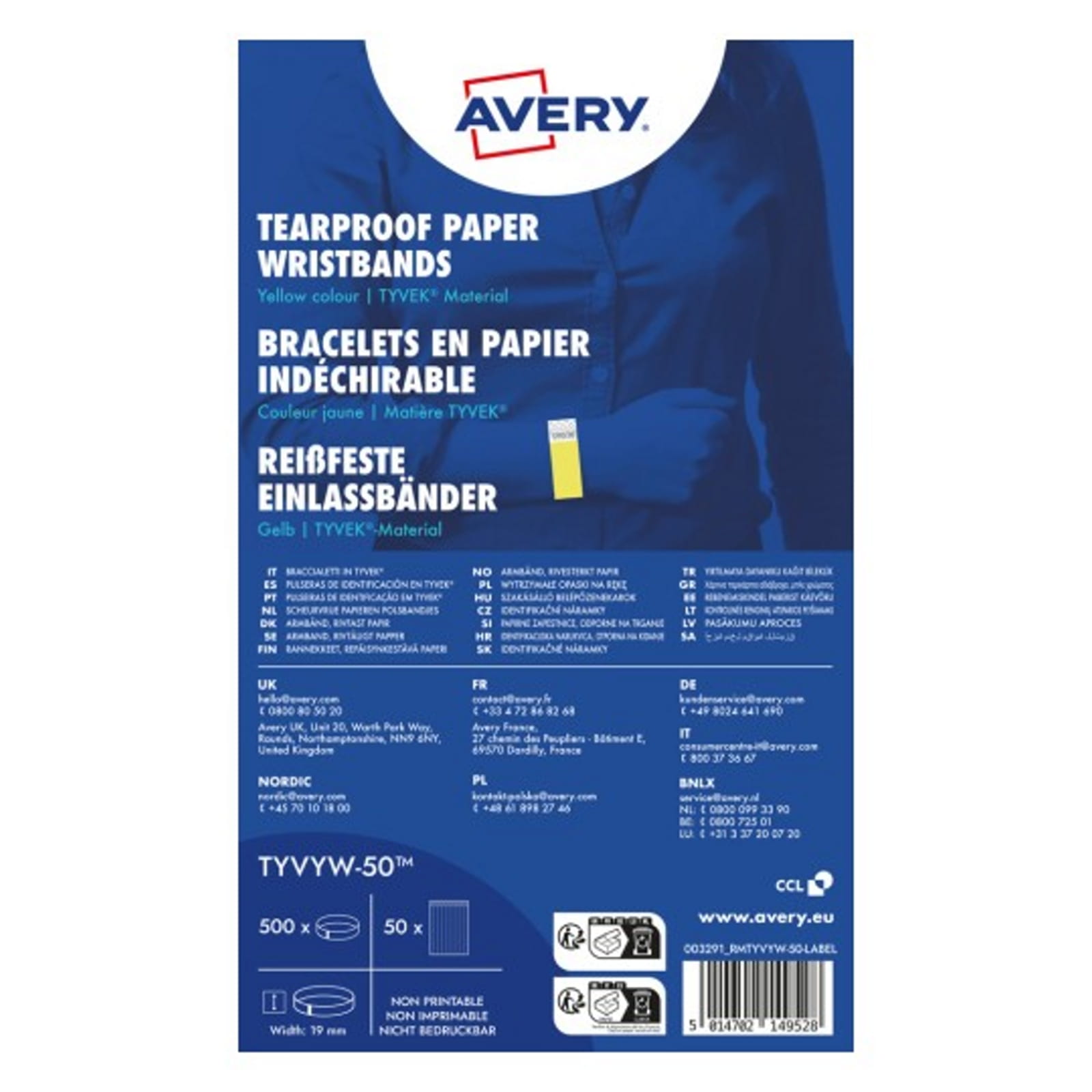 Identyfikatory opaski na nadgarstki AVERY ZWECKFORM 256 x 19mm kol. żółty neonowy 500 szt. posiadają numerację seryjną TYVYW-50