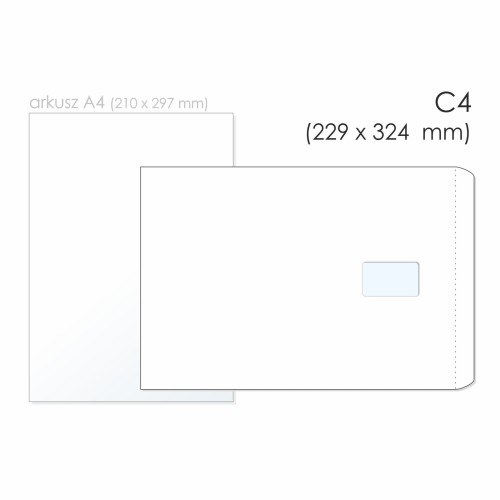 Koperta uniwersalna C4 SK BONG kol. biały papier 229 x 324mm 80g okno prawe 55 x 90mm foliowana 50 szt.