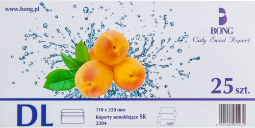 Koperta uniwersalna DL SK BONG kol. biały papier 110 x 220mm 75g foliowana 25 szt. 2204-25
