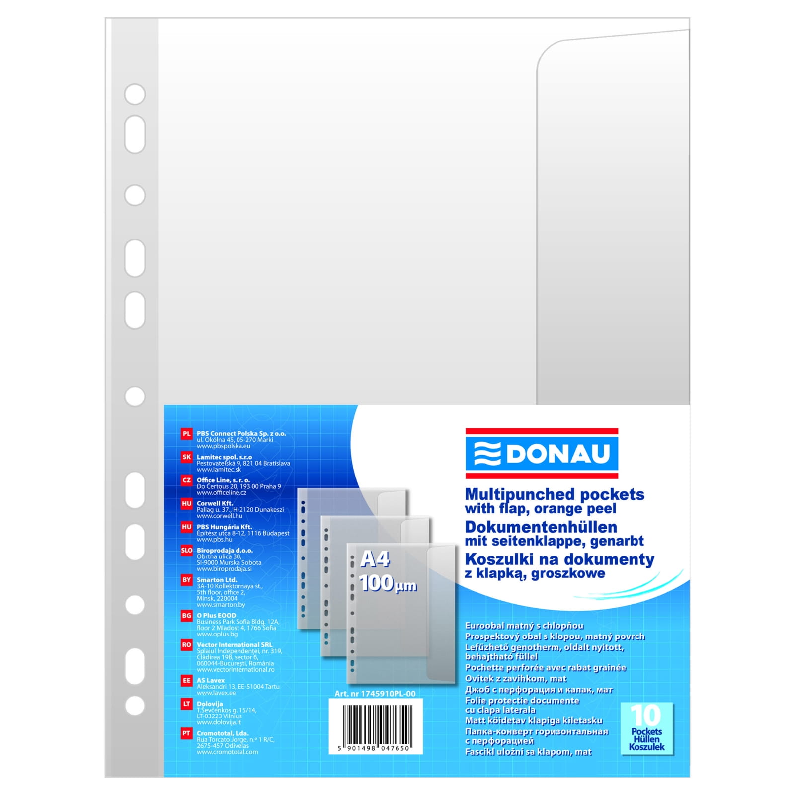 Koszulki na dokumenty groszkowe A4 10 szt. DONAU 100mic z klapką 1745910PL-00