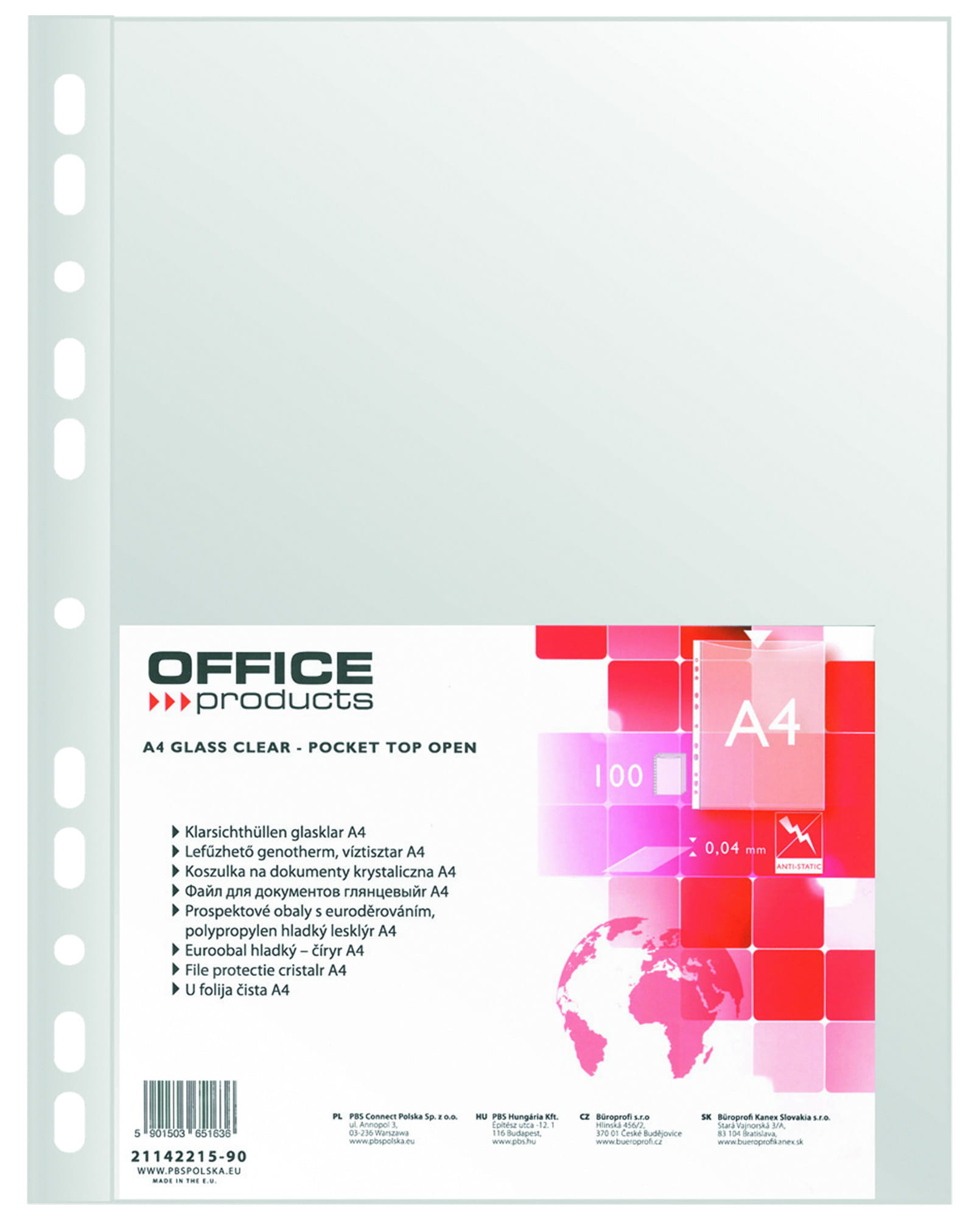 Koszulki na dokumenty krystaliczne A4 100 szt. OFFICE PRODUCTS 40mic 21142215-90
