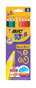 Kredki ołówkowe BIC SUPER SOFT kpl. 8 kol. trójkątne lakierowane z temperówką