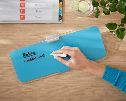 Szklany notatnik na biurko z kolekcji Leitz Cosy jest idealnym narzędziem do notowania i organizacji pracy.Dzięki minimalistycznemu designowi i