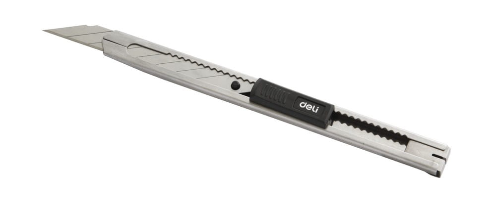 Kompaktowe rozmiary i ergonomiczny kształt ułatwiają obsługę, a solidna metalowa obudowa zwiększa trwałość nożyka.