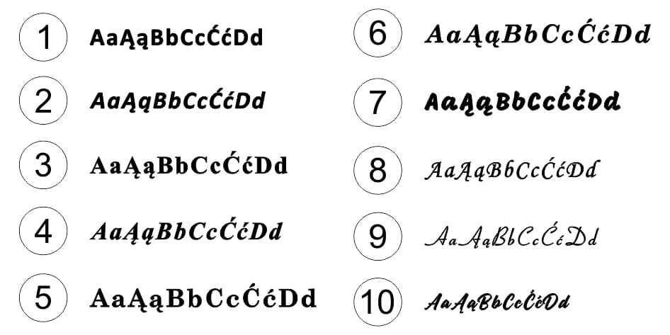 W uwagach do zamówienia podaj tylko numer wybranej czcionki oraz treść graweru.