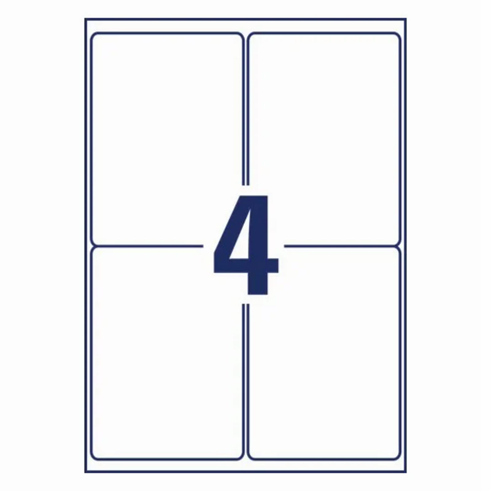Usuwalne, wodoodporne etykiety poliestrowe Avery Zweckform o wymiarach 99,1 x 139 mm, w kolorze białym.