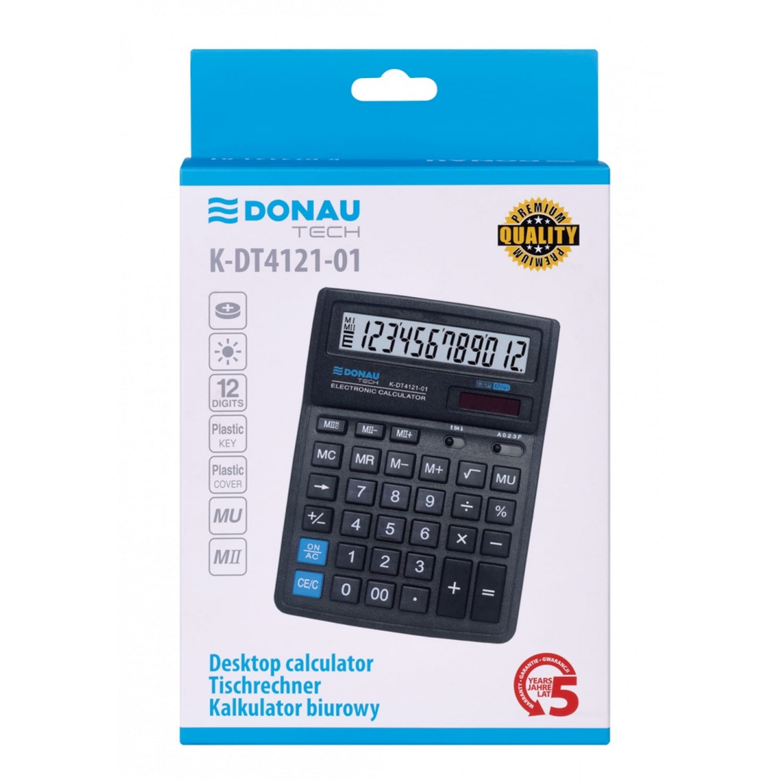 Kalkulator biurowy DONAU TECH kol. czarny 12 pozycyjny [K-DT4121-01]
