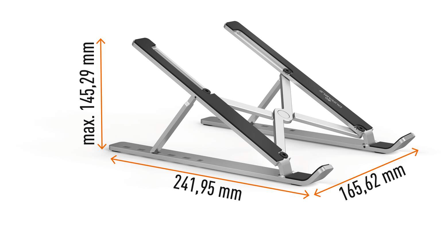Szukasz sposobu na komfortową i ergonomiczną pracę z laptopem? Podstawka regulowana DURABLE to idealnyprodukt dla Ciebie! Podstawka pasuje do laptopów i tabletów o rozmiarach ekranu do 15 cali.