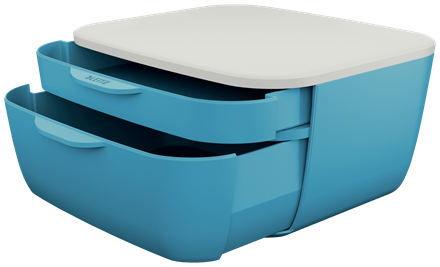 Pojemnik do przechowywania z 2 szufladami z pokrywką 251 x 143 x 275mm LEITZ COSY polistyren kol. niebieski 53570061