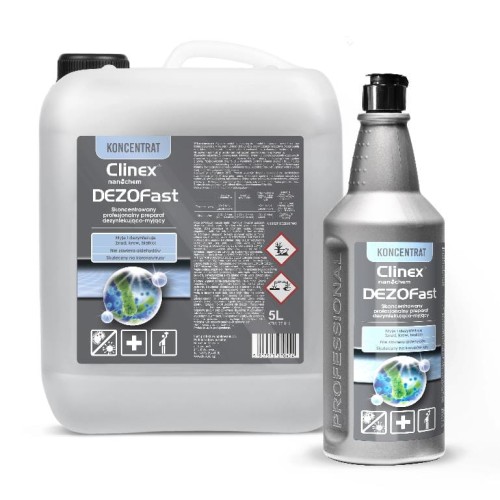 CLINEX Dezofast to profesjonalny preparat dezynfekująco-myjący o działaniu bakteriobójczym, wirusobójczym i grzybobójczym.Przeznaczony do dezynfekcji powierzchni mających