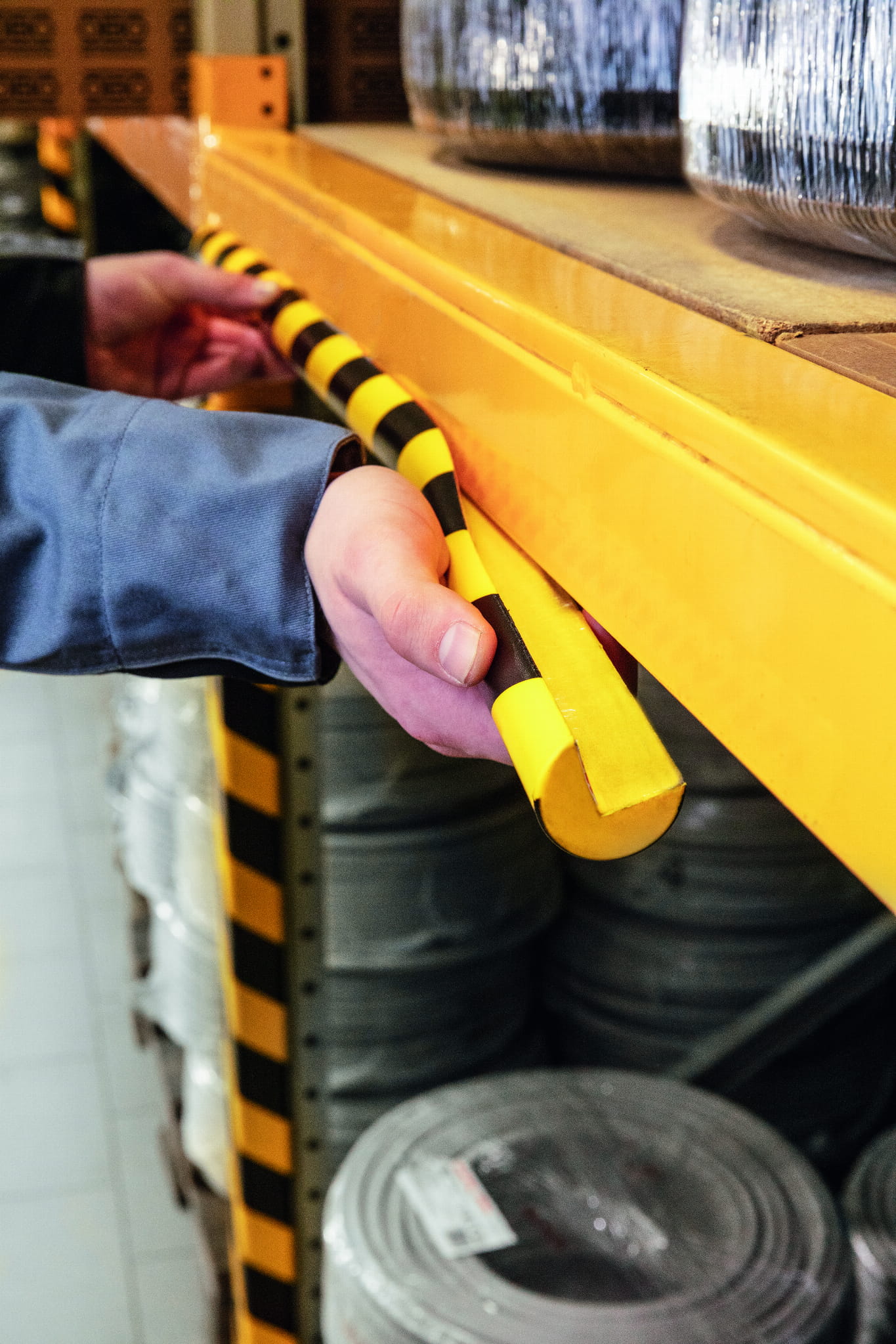 Profil ochronny DURABLE C25R to elastyczny i samoprzylepny element z pianki poliuretanowej, przeznaczony do zabezpieczania narożników w miejscach takich jak magazyny, klatki schodowe i garaże.Chroni powierzchnie przed uszkodzeniami i oznacza miejsca niebezpieczne.