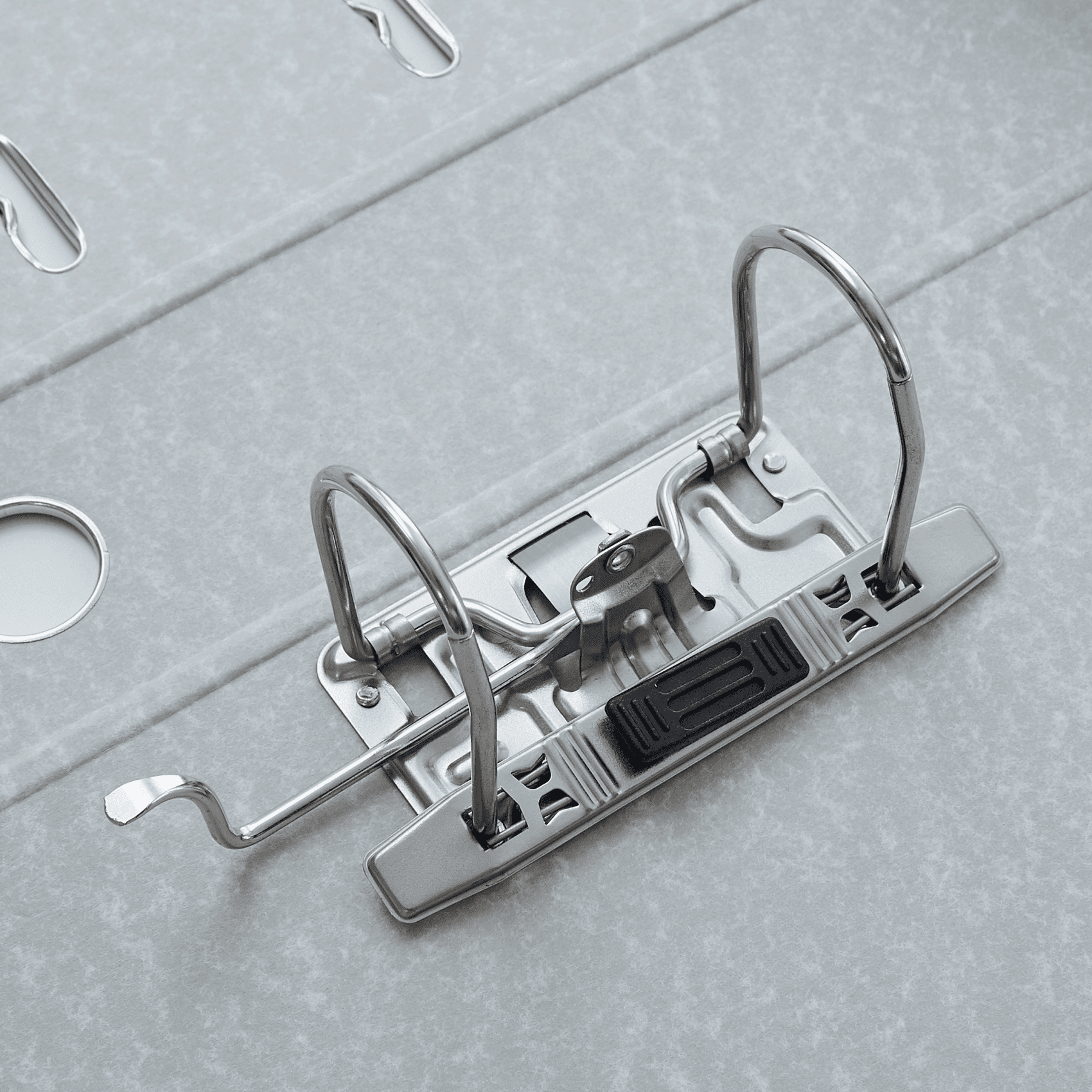- otwory blokujące przednią okładkę, otwór na palec na grzbiecie i metalowe okucia na dolnych krawędziach ułatwiają użytkowanie i bezpieczne przechowywanie dokumentów