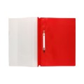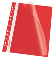 Skoroszyt w kolorze czerwonym, posiadający listwę z perforacją pozwalającą na wpięcie do każdego segregatora oraz wymienną etykietę.