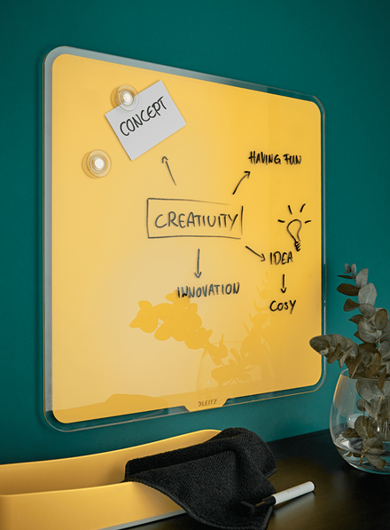 Tablica szklana suchościeralna - magnetyczna 45 x 45cm bezramowa LEITZ kol. żółty 70440019