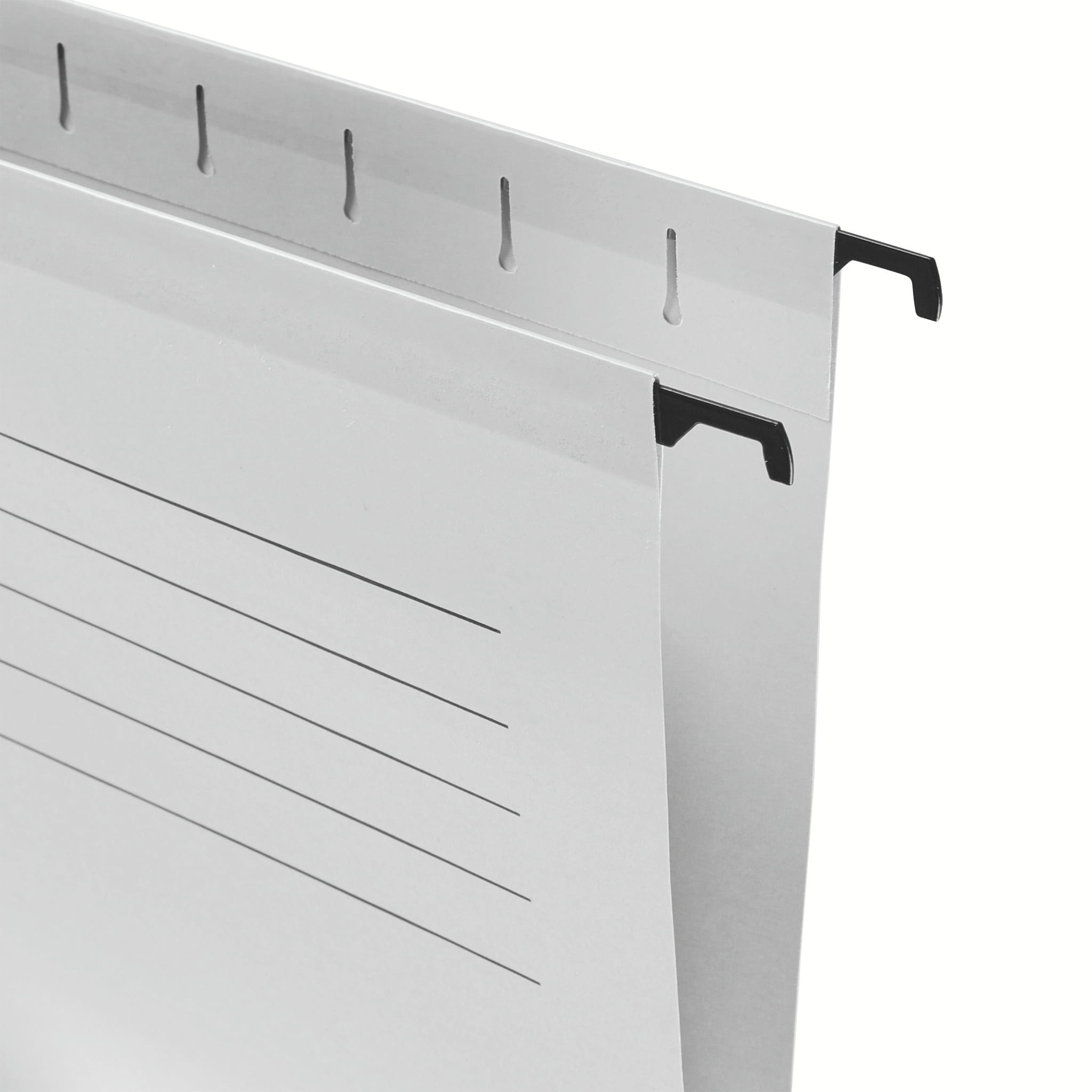 Dno teczki oraz listwa z zawieszkami wzmocniona specjalną folią, co czyni ją bardzo mocną i wytrzymałą.