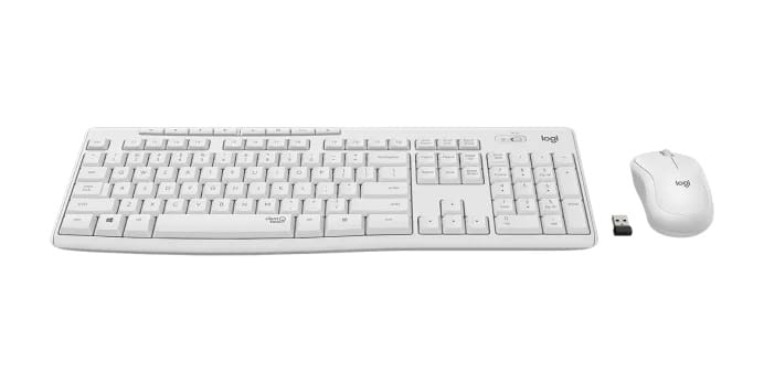 Zestaw bezprzewodowy klawiatura + myszka Logitech MK-295 / MK295 / 920-009824 US biały, Zestaw Logitech MK295 z technologią SilentTouch to ekskluzywna technologia Logitech, która eliminuje ponad 90% hałasu wydawanego przez klawiaturę i mysz.