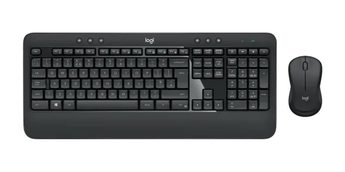 Kształt, rozmiar i działanie klawiszy tej klawiatury pełnowymiarowej sprawiają wrażenie, że używasz jej od lat, a wyprofilowana mysz idealnie pasuje do obu dłoni.