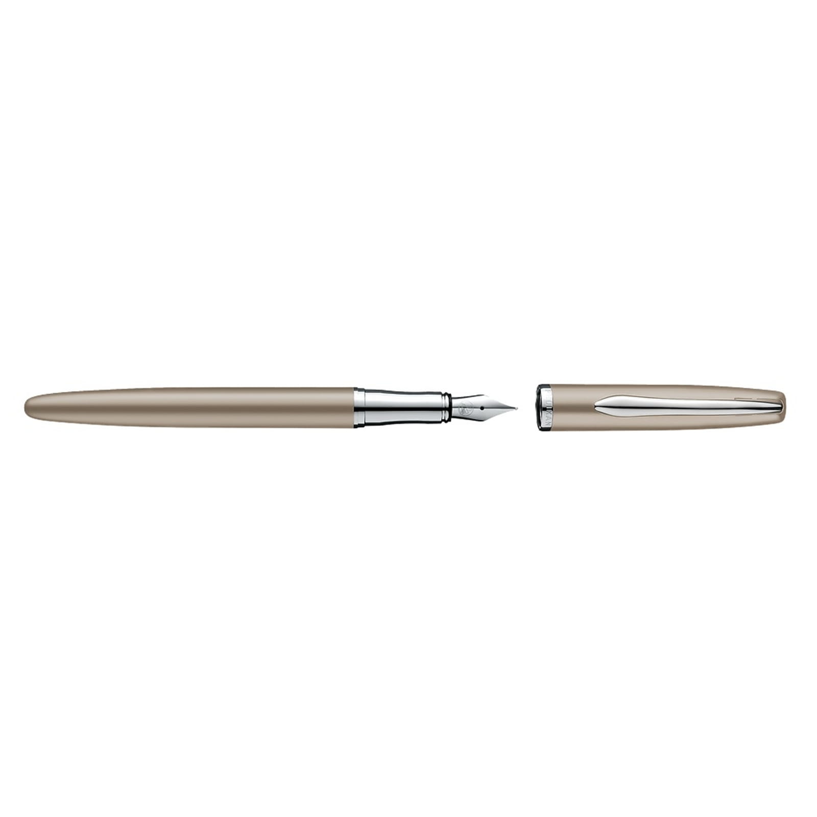 Zestaw Pelikan Jazz Noble Elegance Taupe łączy dwa eleganckie przybory piśmiennicze – pióro wieczne oraz długopis obrotowy – utrzymane w jednolitym, perłowo-beżowym wykończeniu z metalowymi akcentami.Oba instrumenty są doskonale wyważone i zapakowane w stylowe, kartonowe etui, co czyni z zestawu idealny prezent.