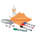 Zestaw startowy do tablic szklanych suchościeralnych NOBO wycierak 4 markery płyn 250ml ściereczka magnesy 1905330