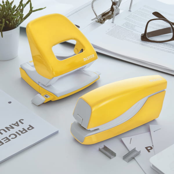 Zszywacz elektryczny LEITZ z kolekcji WOW dzięki swojej żywej, żółtej barwie doda charakteru każdemu pomieszczeniu i pozwoli podkreślić indywidualność użytkownika.